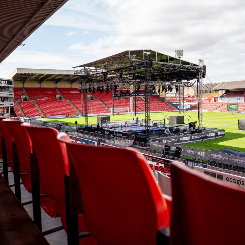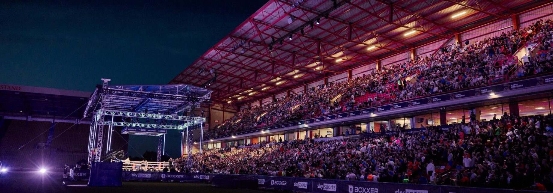Delivering an unreal atmosphere inside Oakwell for the sold out East Stand as local lad Callum Simpson takes on defending champion Zak Chelli.